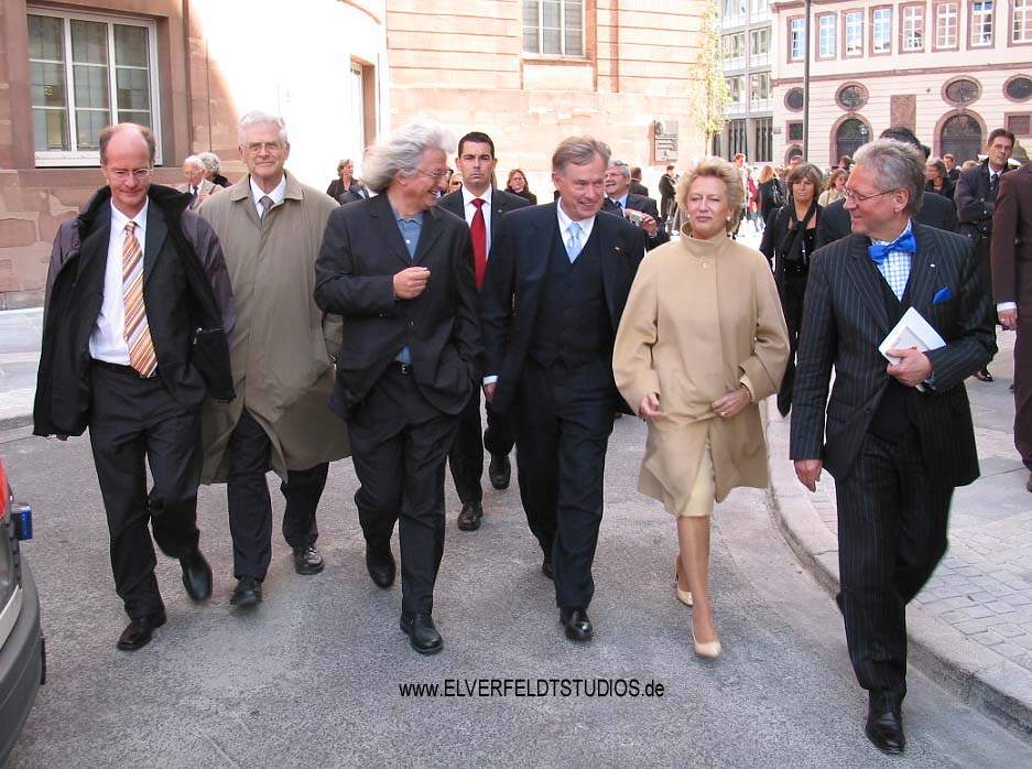 Auf dem Weg von der Paulskirche zum Hotel Frankfurter Hof in der vordersten Reihe von links nach rechts: Der Vorsitzende des Börsenvereins, AlexFrhr. von Elverfeldt, Pèter Esterhàzy, Bundespräsident Köhler und Bürgernmeisterin Roth.